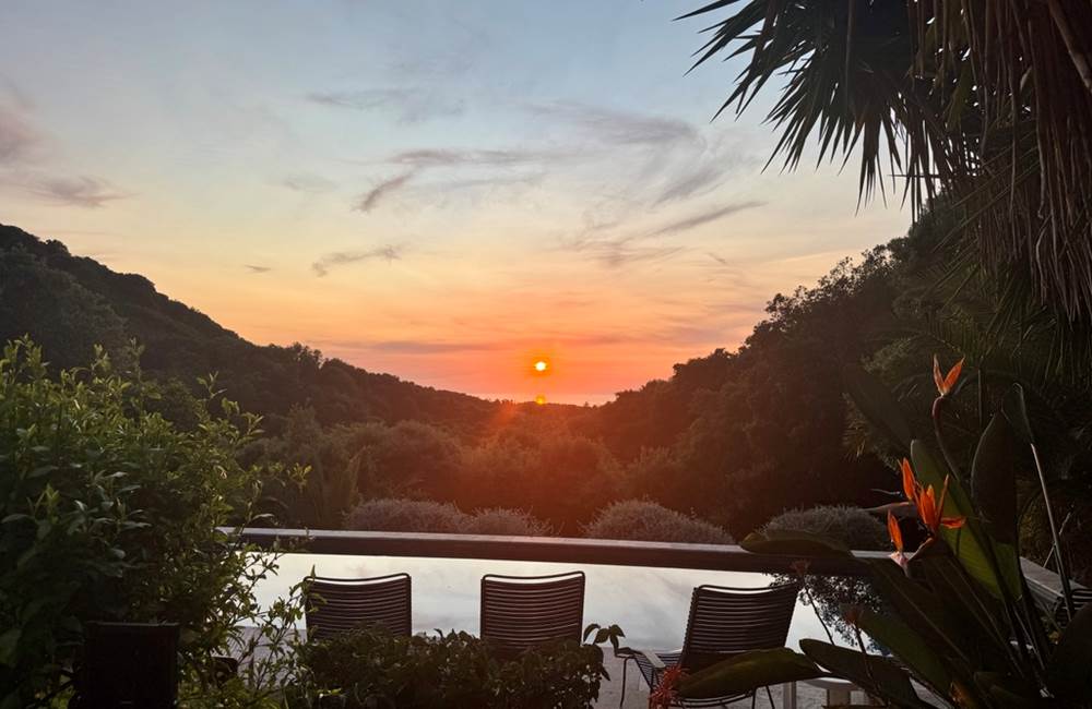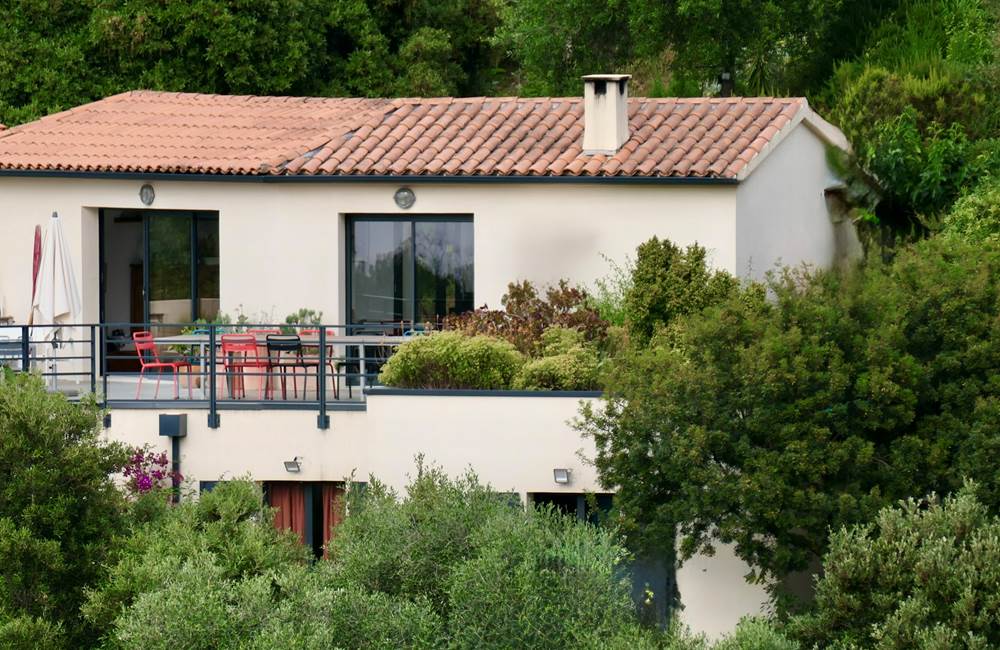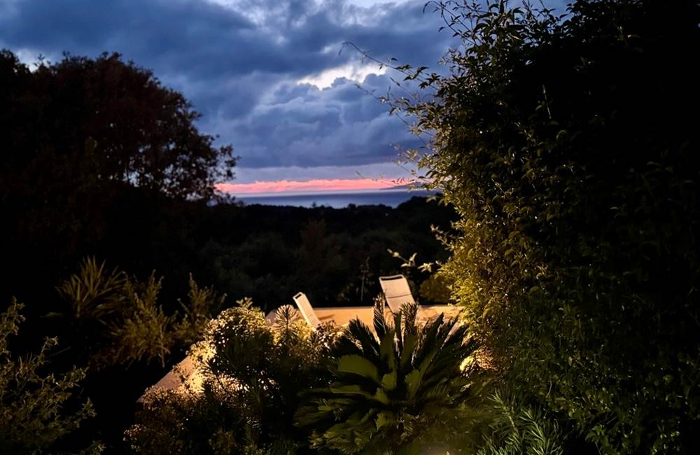 À vingt minutes d’Ajaccio, à mi-pente face au golfe de Sagone, ces deux maisons de construction récente ont tout pour plaire : vue de rêve, décoration actuelle, convivialité – au Ruone, on se sent bien. Vous y occuperez de très confortables chambres, toutes de plain-pied, avec, pour chacune, son coin terrasse et la vue sur la mer et le maquis. Côté décor, leur élégance contemporaine se teinte des plus jolis coloris du moment, et les salles de bains, magnifiques, se parent d’une douche à l’italienne. “Cargese”, la plus petite, est un vrai nid d’amoureux ; “Casaglione”, la plus pimpante, s’anime de touches de vert anis et d’une drôle d’armoire customisée. Une belle pièce à vivre, mêlant chaises et fauteuils design des années 1960, coquillages et gorgones, tableaux ethniques, semble faite pour les chaleurs estivales avec son sol en béton lissé. Si vous n’avez pas envie de descendre tout de suite à la plage (à trois minutes en voiture), une piscine grise dans laquelle se reflètent les variations du ciel vous attend au jardin. Et puis, il y a la grande terrasse face à la mer, où la joyeuse Laure sert les petits déjeuners. Pas de table d’hôtes, mais des restaurants pas loin, et les pique-niques sont autorisés dans le jardin (minifrigo dans chaque chambre). Des moments de bonheur à partager face au soleil couchant et qui donnent envie de revenir très vite...