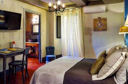 Village-balcon dominant la plaine d'Oletta, Rapale, environné de pâturages et de vergers, raconte l'opulence d'antan de cette terre du Nebbio, réputée pour sa charcuterie. À la Casa Ghjunca , loin de l'agitation du bord de mer, vous pourrez en goûter toutes les saveurs le matin : Janick Balbinot prépare un vrai petit repas à base de produits locaux salés (omelette au brocciu et à la menthe, pancetta) et sucrés (confitures et jus de fruits bio, canistrelli), qu'elle vous servira dehors quand il fait bon. Belvédère sur la vallée, la maison au beau bâti XVIIe bénéficie, depuis ses chambres, sa piscine et ses terrasses-jardin, de vues extraordinaires sur le village, la campagne, et le golfe de Saint-Florent, au loin. Diplômée en arts appliqués, Janick a revisité les frises et motifs des vieilles maisons corses, avec une palette de couleurs actuelles, les mélangeant d'un pan de mur à l'autre. Chineuse dans l'âme, elle a également patiné des meubles des années 1930 et trouvé quelques perles qu'elle a semées sur les paliers, dans les chambres et les salles de bains à la douceur nostalgique, dans les salons (l'un avec bibliothèque et discothèque de vinyles, l'autre avec cheminée, dans une étonnante pièce aux murs de pierre et voûtes chaulées). Bonnes adresses, balades nature : votre hôtesse sera votre guide. Une maison authentique. Et belle !