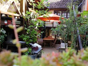 Ils ont voyagé, beaucoup, longtemps. Et dans le monde entier ! Et puis, après vingt ans de carrière dans le domaine artistique – Jean-Pierre était communiquant et Eloy danseur –, ils eurent envie de se poser. Restait à dénicher la maison de campagne, celle qui hante nos imaginaires telle une image d’Épinal. C’est à Saint-Cybranet, petit village situé dans le triangle d’or du Périgord noir, à une dizaine de kilomètres de grands sites (Sarlat, Beynac-et-Cazenac, La Roque-Gageac, Domme, Castelnaud...) qu’ils ont trouvé leur perle. Une ferme périgourdine constituée de trois bâtiments répartis dans un bel espace très végétalisé, où il fait bon paresser sous la pergola, à l’ombre d’un magnifique tilleul, ou encore dans le Jacuzzi posé sur une terrasse en bois. Certains choisiront le salon littéraire : aménagé dans l’ancienne cuisine dans un style broc’ et design, il regorge d’ouvrages, de documents touristiques et de jeux de société à découvrir confortablement installé. Dans les chambres aux tons très doux (gris nuage, blanc craie, tilleul), on retrouve cet esprit “campagne vintage” cher à vos hôtes : charpente et planchers massifs en chêne s’associent à des meubles et objets chinés, des photos d’artistes. Au total, quatre jolis cocons (de 25 à 70 m2) pour se reposer après avoir conversé dans une ambiance simple et chaleureuse autour d’un dîner proposé plusieurs soirs par semaine par des hôtes friands de produits locaux et heureux d’être là. Heureux, nous le sommes aussi ici.