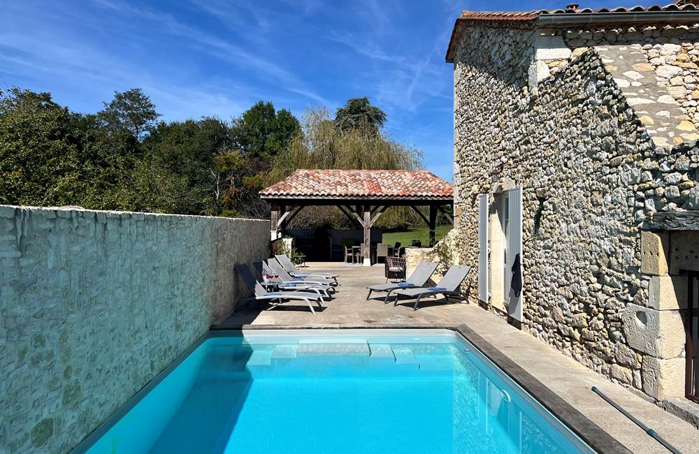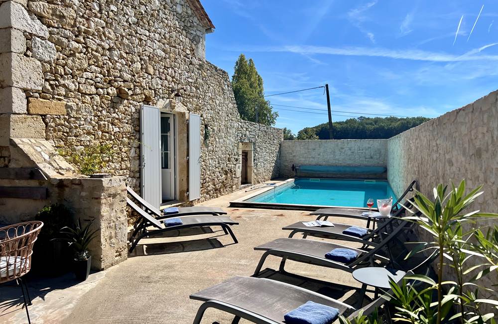 Trish est écossaise, Mark anglais. Leur maison vigneronne située entre Saint-Émilion et Bergerac fut jadis la propriété de Jean Carrive, l'un des premiers surréalistes, et traducteur de Kafka. Entouré de 6 hectares de champs, de bois et de jardin, l'endroit est idéal pour s'installer au calme. Les amateurs de farniente seront sûrement tentés par la piscine (traitée au sel) ou par une sieste à l'ombre d'un magnifique saule pleureur. L'intérieur est à l'image de la maîtresse des lieux : simple, chaleureux et raffiné. Le salon avec canapés moelleux et cheminée offre un espace de lecture confortable dans lequel on admire l'art africain affectionné par les propriétaires, nés respectivement en Tanzanie et au Kenya. Dans une autre pièce, avec cheminée également, une longue table en bois attend les convives pour le dîner et le petit déjeuner. Des moments privilégiés où l'on goûte des plats confectionnés avec la récolte du potager ou celle de petits producteurs locaux – un circuit court qui s'applique aussi au choix des vins. Quant aux chambres, toutes avec vue sur le jardin, elles sont vastes et lumineuses. Du blanc, du bleu ciel, du gris souris, du beige. Des chevets, des têtes de lit et des consoles en bois clair. Et puis des jetés de lit parme ou des tissus écossais. Tout cela crée une ambiance champêtre et romantique. Même raffinement dans les salles de bains où sont proposés des produits de grande marque.